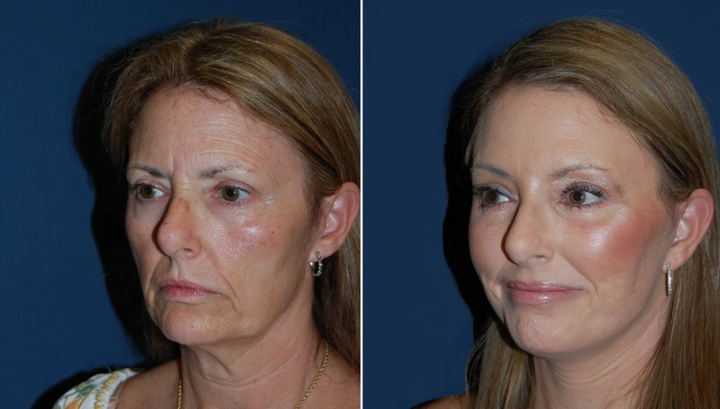 Patients frequently choose to have a lower lid blepharoplasty using Dr Freeman’s state of the art SOOF lift technique at the same time as a deep plane Facelift. It can help give an all-round rejuvenation by improving puffiness (bags) under the eye and hollowness under the lower lid. This procedure not only helps these issues but also helps lift the midface, which improves midface rejuvenation along with the deep plane facelift. Should both procedures be done simultaneously it may require a longer recovery. However, the outcomes are amazing and give patients a significantly younger look.