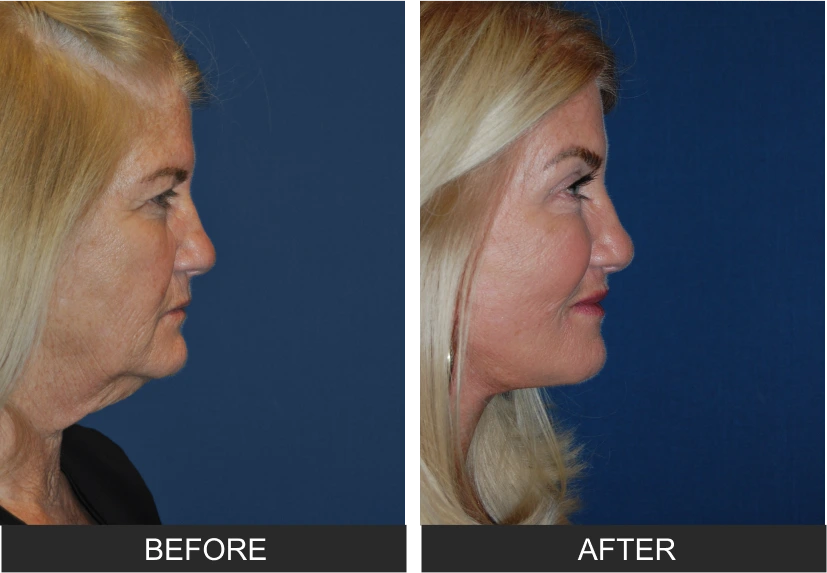 Dr Freeman’s Facelift with Neck Lift is one of the most advanced Facelift techniques available. He performs this procedure by making incisions that extend from the ear to the temples along the hairline. By delicately repositioning the deeper facial tissues, he is able to achieve a tighter and more youthful appearance without causing a stretched appearance (as can happen with other methods). This method also requires a minor cut beneath the chin. This way, excess fat from the neck can be removed via liposculpture, and the mandibular ligament can be loosened. That kind of Facelift is perfect for individuals whose cheeks, jawline, and neck have sagged considerably.